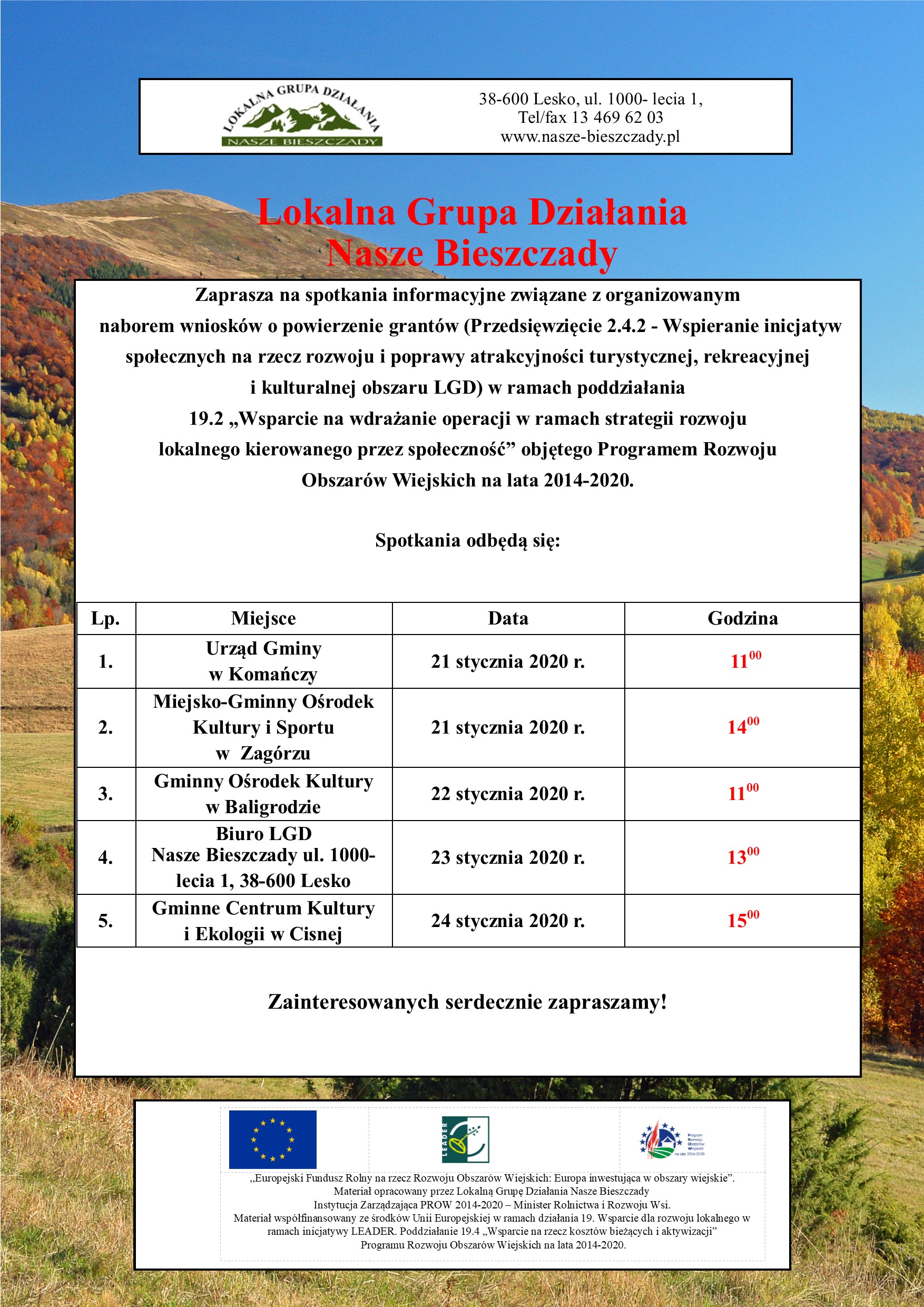 Informacja Lokalnej Grupy Działania Nasze Bieszczady – „Rozwój ogólnodostępnej i niekomercyjnej infrastruktury turystycznej lub rekreacyjnej, lub kulturalnej”.