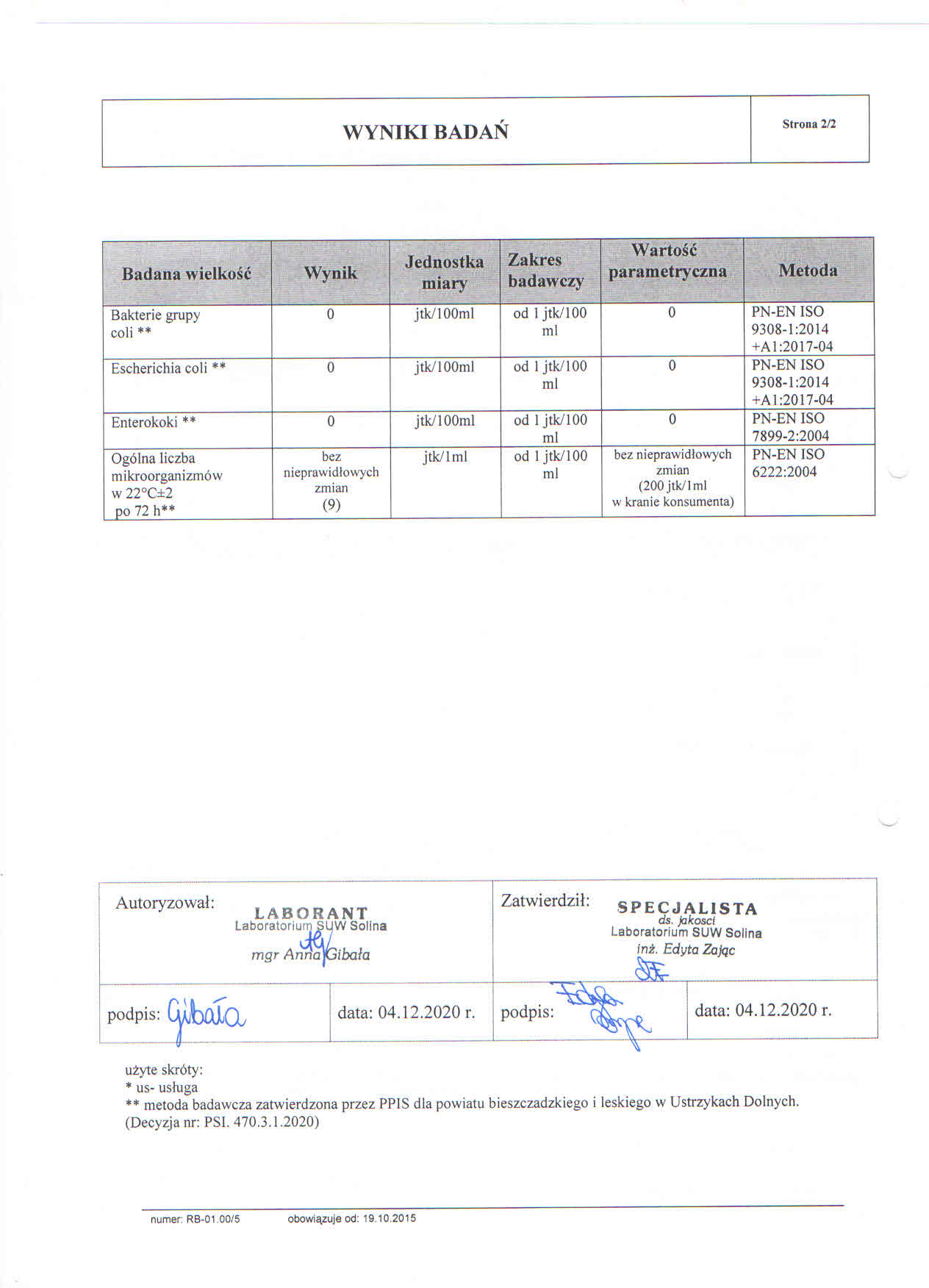 Urząd Gminy Cisna informuje, iż próbki wody z wodociągów w miejscowości Smerek pobrane w dniu 1 grudnia 2020 r. nie wykazują zanieczyszczeń.