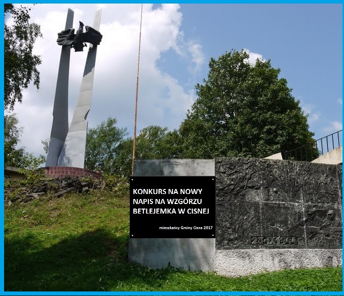 Dla upamiętnienia poległych w obronie swojego domu i domów swoich bliskich, Urząd Gminy Cisna i Fundacja Tylko Bieszczady ogłasza konkurs na nową tablicę na pomniku znajdującym się na wzgórzu Betlejemka w Cisnej. Celem konkursu jest opracowanie treści i projektu graficznego nowej tablicy upamiętniającej w godnej formie obrońców Cisnej z lat 1944-1947 o treści odpowiadającej faktom historycznym.