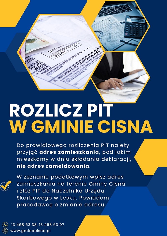 Jeśli jesteś mieszkańcem Gminy Cisna, złóż deklarację do Urzędu Skarbowego w Lesku, podając w zeznaniu podatkowym adres zamieszkania na terenie naszej gminy.